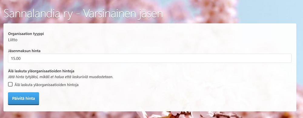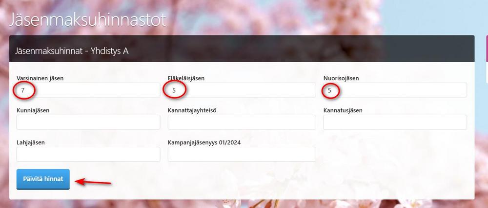 3. Päivitä hintatiedot / jäsenmaksuosuudet