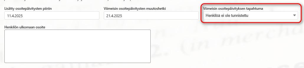 Päivityksen lopputulema voi olla tieto kuolemasta, asumisesta ulkomailla tai henkilöllä on tietojeluovutuskielto.