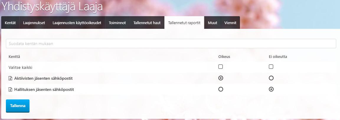 Tallennetut raportit