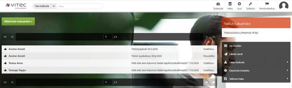 Tapahtuman etusivulle kerätään yhteen ko. tapahtumaan liittyvät ilmoittautumiset.