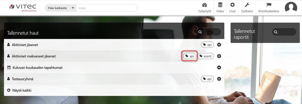Jos rekisterissänne on muitakin api-hakuja, esim. mobiilijäsenkortiin tai muutoslomakkeeseen liittyen, kannattaa tapahtumahallintaan liittyvään hakuun lisätä toinenkin asiasana, esim. tapahtuma tai event.
